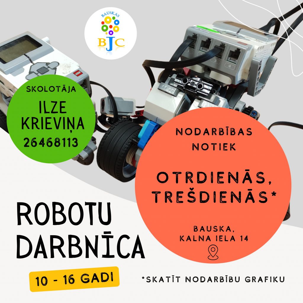 - Robotu darbnīca (10–16 gadi) – iedziļināmies robotikā, programmēšanā un sensoru darbībā, konstruējam un testējam savus robotus, kā arī piedalāmies sacensībās un konkursos.